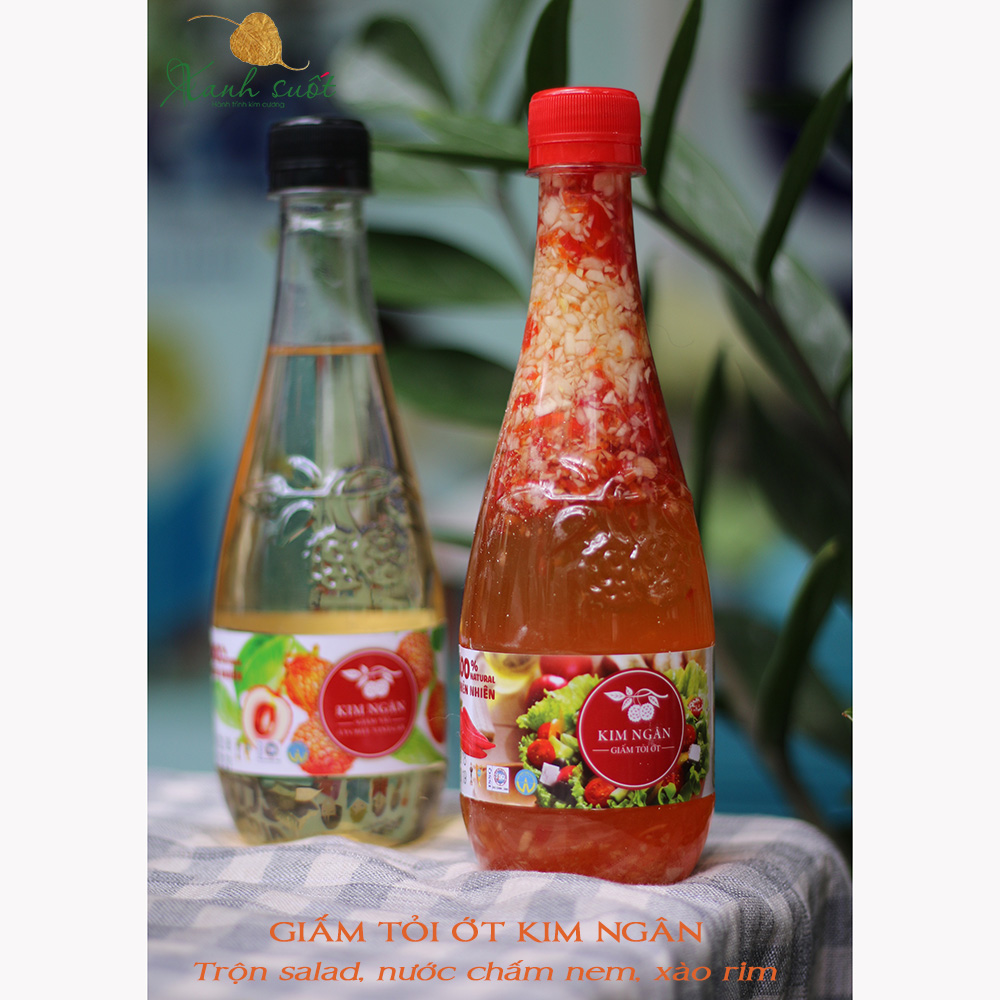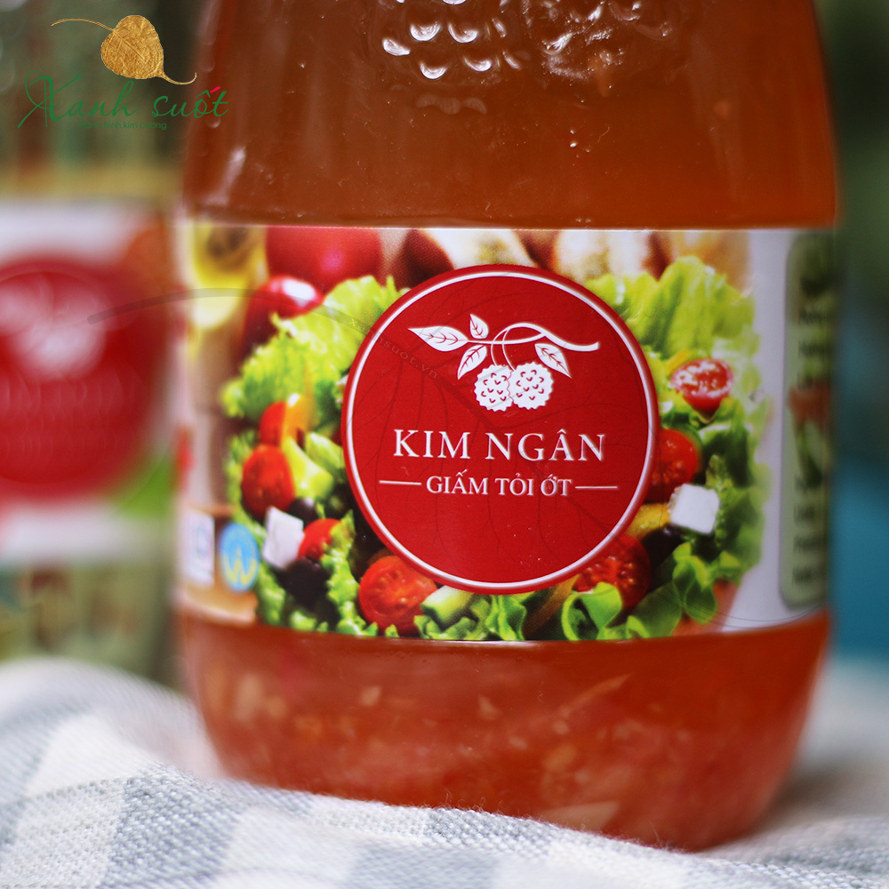 Giấm tỏi ớt Kim Ngân là một sản phẩm đặc biệt phù hợp với khẩu vị của người Việt Nam, là sự kết hợp giữa giấm vải, giấm táo xanh, giấm táo mèo, đường kính, tỏi và ớt.